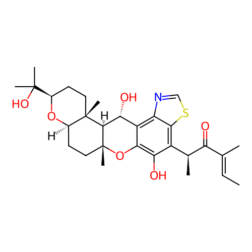 | SMILES | CC=C(C)C(=O)[C@@H](C)C1=C2C(=C3[C@H]([C@@H]4[C@]5(CC[C@@H](O[C@@H]5CC[C@]4(OC3=C1O)C)C(C)(C)O)C)O)N=CS2 |