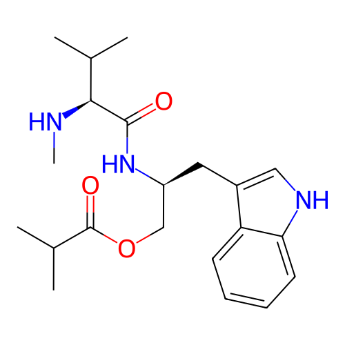 | SMILES | CC(C)[C@@H](C(=O)N[C@@H](CC1=CNC2=CC=CC=C21)COC(=O)C(C)C)NC |