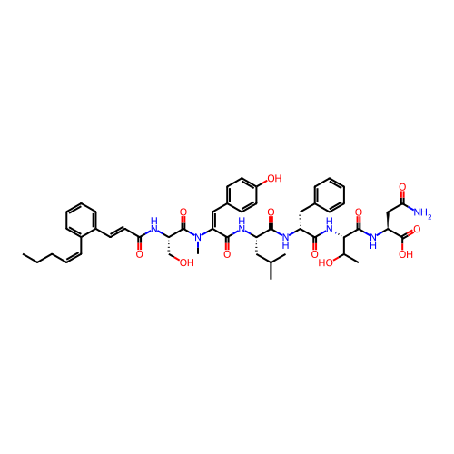 | SMILES | CCC/C=C\C1=CC=CC=C1/C=C/C(=O)N[C@@H](CO)C(=O)N(C)/C(=C/C2=CC=C(C=C2)O)/C(=O)N[C@@H](CC(C)C)C(=O)N[C@H](CC3=CC=CC=C3)C(=O)N[C@@H](C(C)O)C(=O)N[C@@H](CC(=O)N)C(=O)O |