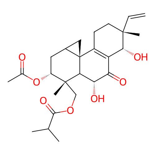 | InChI | InChI=1S/C26H36O7/c1-7-24(5)9-8-16-18(22(24)30)19(28)20(29)21-25(6,12-32-23(31)13(2)3)17(33-14(4)27)10-15-11-26(15,16)21/h7,13,15,17,20-22,29-30H,1,8-12H2,2-6H3/t15?,17-,20+,21?,22-,24+,25-,26-/m1/s1 |