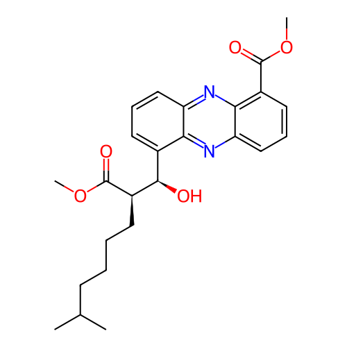 | InChI | InChI=1S/C25H30N2O5/c1-15(2)9-5-6-10-18(25(30)32-4)23(28)16-11-7-13-19-21(16)26-20-14-8-12-17(22(20)27-19)24(29)31-3/h7-8,11-15,18,23,28H,5-6,9-10H2,1-4H3/t18-,23-/m1/s1 |
