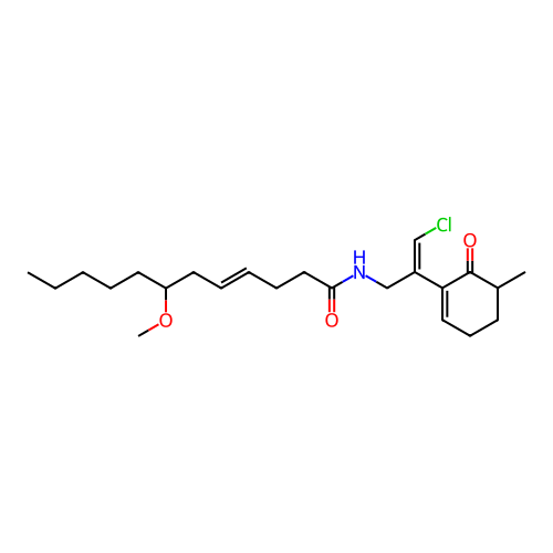 | SMILES | CCCCCC(C/C=C/CCC(=O)NC/C(=C/Cl)/C1=CCCC(C1=O)C)OC |