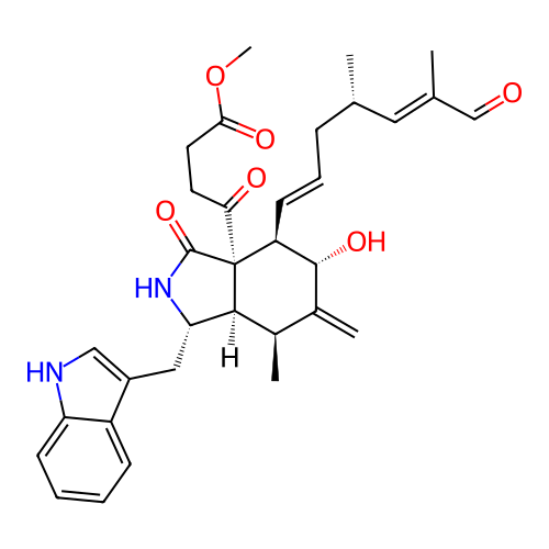 | SMILES | C[C@H]1[C@H]2[C@@H](NC(=O)[C@]2([C@H]([C@@H](C1=C)O)/C=C/C[C@H](C)/C=C(\C)/C=O)C(=O)CCC(=O)OC)CC3=CNC4=CC=CC=C43 |