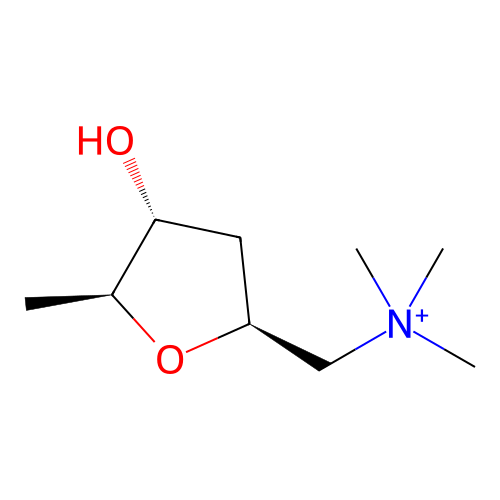 | SMILES | O[C@@H]1C[C@H](O[C@H]1C)C[N+](C)(C)C |