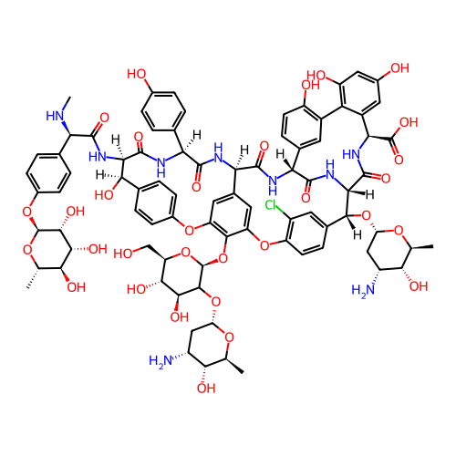 | SMILES | C[C@H]1[C@@H]([C@@H](C[C@@H](O1)O[C@H]2[C@H]3C(=O)N[C@@H](C4=CC(=CC(=C4C5=C(C=CC(=C5)[C@H](C(=O)N3)NC(=O)[C@H]6C7=CC(=C(C(=C7)OC8=C(C=C2C=C8)Cl)O[C@H]9C([C@H]([C@@H]([C@H](O9)CO)O)O)O[C@H]1C[C@H]([C@H]([C@@H](O1)C)O)N)OC1=CC=C(C=C1)[C@H]([C@H](C(=O)N[C@H](C(=O)N6)C1=CC=C(C=C1)O)NC(=O)[C@@H](C1=CC=C(C=C1)O[C@H]1[C@@H]([C@@H]([C@H]([C@@H](O1)C)O)O)O)NC)O)O)O)O)C(=O)O)N)O |