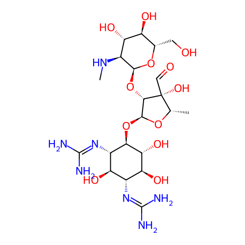 | SMILES | C[C@H]1[C@@]([C@H]([C@@H](O1)O[C@@H]2[C@H]([C@@H]([C@H]([C@@H]([C@H]2O)O)N=C(N)N)O)N=C(N)N)O[C@H]3[C@H]([C@@H]([C@H]([C@@H](O3)CO)O)O)NC)(C=O)O |