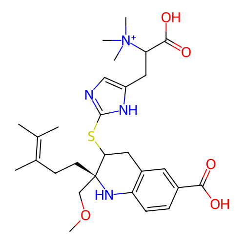 | SMILES | CC(=C(C)CC[C@]1(C(CC2=C(N1)C=CC(=C2)C(=O)O)SC3=NC=C(N3)CC(C(=O)O)[N+](C)(C)C)COC)C |
