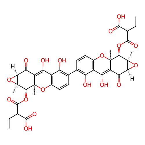 | SMILES | CCC(C(=O)O)C(=O)O[C@H]1[C@@]2([C@@H](O2)C(=O)C3=C(C4=C(C=CC(=C4O)C5=C(C6=C(C=C5)O[C@]7([C@H]([C@@]8([C@@H](O8)C(=O)C7=C6O)C)OC(=O)C(CC)C(=O)O)C)O)O[C@@]13C)O)C |