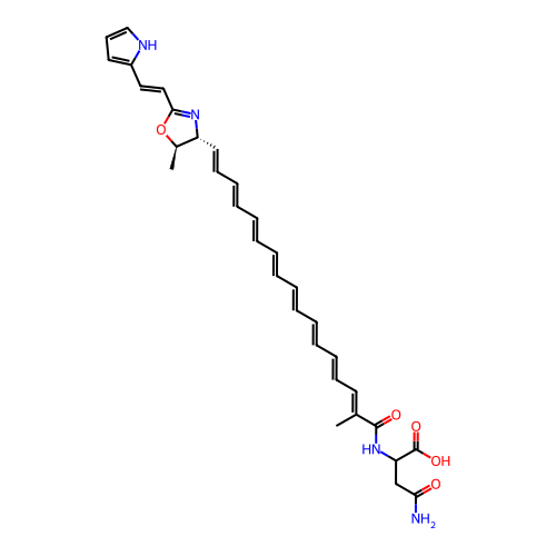 | SMILES | C[C@@H]1[C@H](N=C(O1)/C=C/C2=CC=CN2)/C=C/C=C/C=C/C=C/C=C/C=C/C=C/C=C(\C)/C(=O)NC(CC(=O)N)C(=O)O |