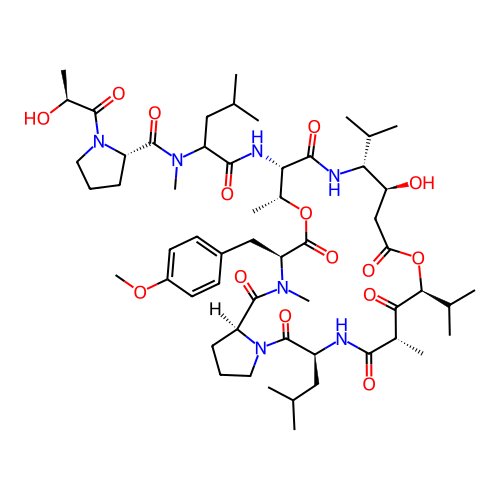 | SMILES | C[C@@H]1[C@@H](C(=O)N[C@@H]([C@H](CC(=O)O[C@H](C(=O)[C@@H](C(=O)N[C@H](C(=O)N2CCC[C@H]2C(=O)N([C@H](C(=O)O1)CC3=CC=C(C=C3)OC)C)CC(C)C)C)C(C)C)O)C(C)C)NC(=O)C(CC(C)C)N(C)C(=O)[C@@H]4CCCN4C(=O)[C@H](C)O |