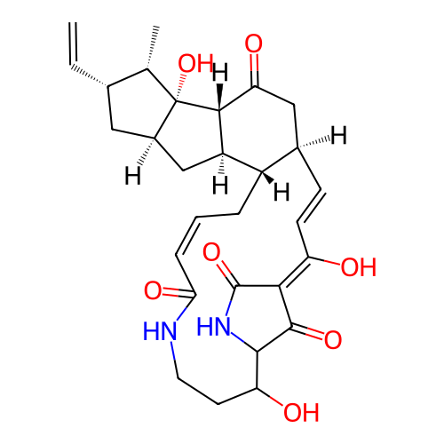 | InChI | InChI=1S/C29H36N2O7/c1-3-15-11-17-13-19-18-5-4-6-23(35)30-10-9-21(33)26-27(36)24(28(37)31-26)20(32)8-7-16(18)12-22(34)25(19)29(17,38)14(15)2/h3-4,6-8,14-19,21,25-26,32-33,38H,1,5,9-13H2,2H3,(H,30,35)(H,31,37)/b6-4-,8-7+,24-20?/t14-,15-,16+,17+,18-,19+,21?,25-,26?,29-/m0/s1 |