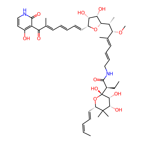 | SMILES | CC[C@H](C(=O)NC/C=C/C=C(\C)/[C@H]([C@@H](C)[C@H]1[C@H]([C@H]([C@H](O1)/C=C/C=C/C=C(\C)/C(=O)C2=C(C=CNC2=O)O)O)O)OC)[C@@]3([C@@H]([C@@H](C([C@@H](O3)/C=C/C=C\C)(C)C)O)O)O |