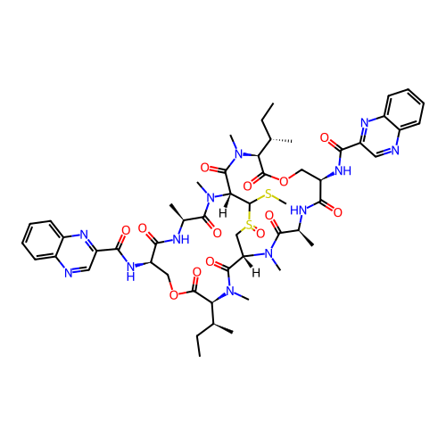 | SMILES | CC[C@H](C)[C@H]1C(=O)OC[C@H](C(=O)N[C@H](C(=O)N([C@H]2C(S(=O)C[C@@H](C(=O)N1C)N(C(=O)[C@@H](NC(=O)[C@@H](COC(=O)[C@@H](N(C2=O)C)[C@@H](C)CC)NC(=O)C3=NC4=CC=CC=C4N=C3)C)C)SC)C)C)NC(=O)C5=NC6=CC=CC=C6N=C5 |