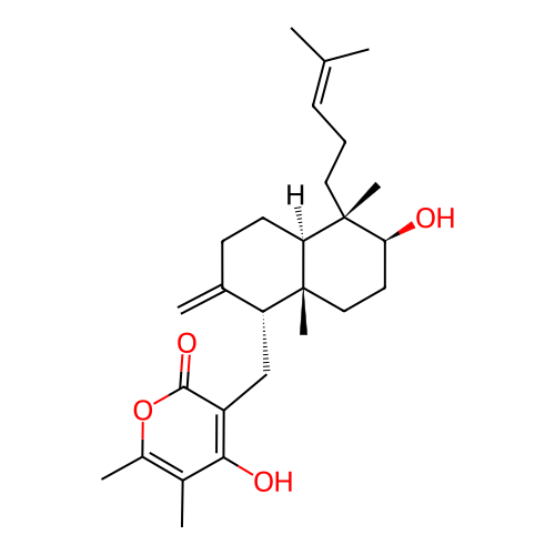 | SMILES | CC1=C(OC(=O)C(=C1O)C[C@@H]2C(=C)CC[C@@H]3[C@@]2(CC[C@@H]([C@@]3(C)CCC=C(C)C)O)C)C |