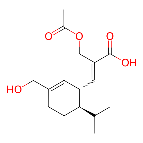 | InChI | InChI=1S/C16H24O5/c1-10(2)15-5-4-12(8-17)6-13(15)7-14(16(19)20)9-21-11(3)18/h6-7,10,13,15,17H,4-5,8-9H2,1-3H3,(H,19,20)/b14-7+/t13-,15-/m1/s1 |