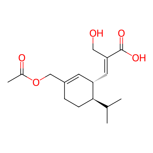| InChI | InChI=1S/C16H24O5/c1-10(2)15-5-4-12(9-21-11(3)18)6-13(15)7-14(8-17)16(19)20/h6-7,10,13,15,17H,4-5,8-9H2,1-3H3,(H,19,20)/b14-7+/t13-,15-/m1/s1 |