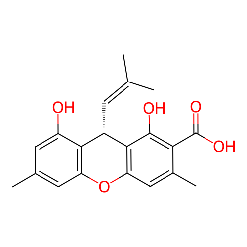 | InChI | InChI=1S/C20H20O5/c1-9(2)5-12-17-13(21)6-10(3)7-14(17)25-15-8-11(4)16(20(23)24)19(22)18(12)15/h5-8,12,21-22H,1-4H3,(H,23,24)/t12-/m0/s1 |