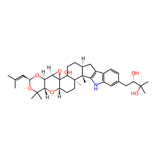 | InChI | InChI=1S/C37H51NO7/c1-19(2)15-27-43-28-30(33(5,6)44-27)42-26-12-13-34(7)35(8)21(11-14-36(34,41)37(26)31(28)45-37)18-23-22-10-9-20(16-24(22)38-29(23)35)17-25(39)32(3,4)40/h9-10,15-16,21,25-28,30-31,38-41H,11-14,17-18H2,1-8H3/t21-,25-,26-,27-,28+,30-,31+,34+,35+,36-,37-/m0/s1 |
