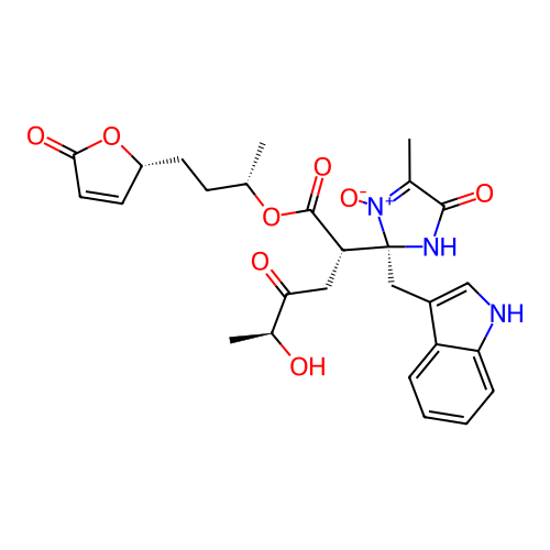| SMILES | CC1=[N+]([C@](NC1=O)(CC2=CNC3=CC=CC=C32)[C@H](CC(=O)[C@H](C)O)C(=O)O[C@@H](C)CC[C@@H]4C=CC(=O)O4)[O-] |