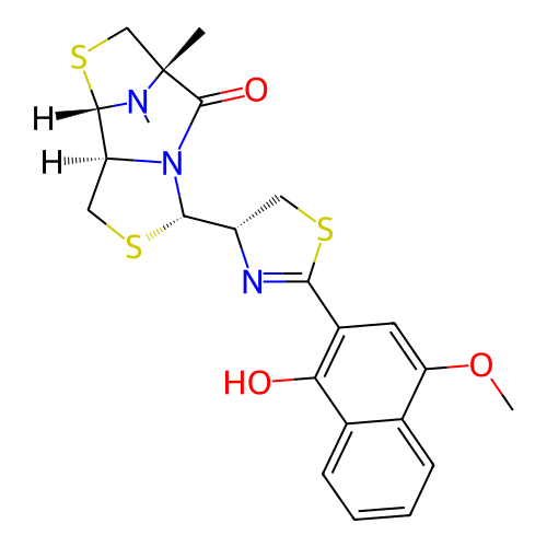 | SMILES | C[C@]12CS[C@H](N1C)[C@@H]3CS[C@H](N3C2=O)[C@@H]4CSC(=N4)C5=C(C6=CC=CC=C6C(=C5)OC)O |