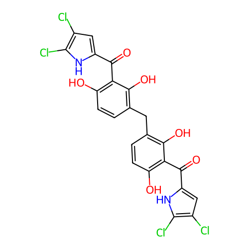 | SMILES | C1=CC(=C(C(=C1CC2=C(C(=C(C=C2)O)C(=O)C3=CC(=C(N3)Cl)Cl)O)O)C(=O)C4=CC(=C(N4)Cl)Cl)O |