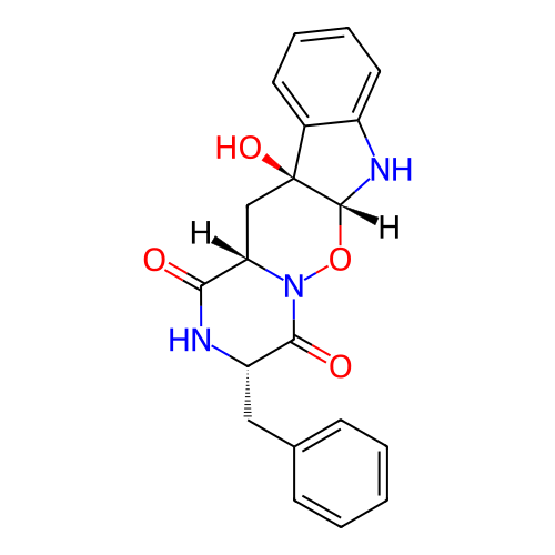 | SMILES | C1[C@H]2C(=O)N[C@H](C(=O)N2O[C@@H]3[C@]1(C4=CC=CC=C4N3)O)CC5=CC=CC=C5 |