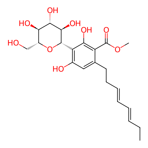 | SMILES | CC/C=C/C=C/CCC1=CC(=C(C(=C1C(=O)OC)O)[C@H]2[C@@H]([C@H]([C@@H]([C@H](O2)CO)O)O)O)O |