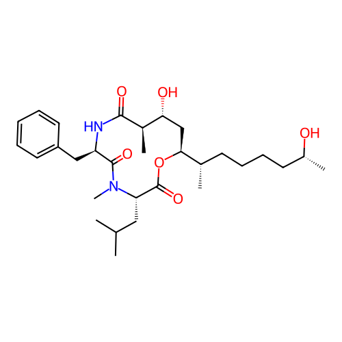 | SMILES | C[C@@H]1[C@@H](C[C@H](OC(=O)[C@@H](N(C(=O)[C@H](NC1=O)CC2=CC=CC=C2)C)CC(C)C)[C@@H](C)CCCC[C@@H](C)O)O |