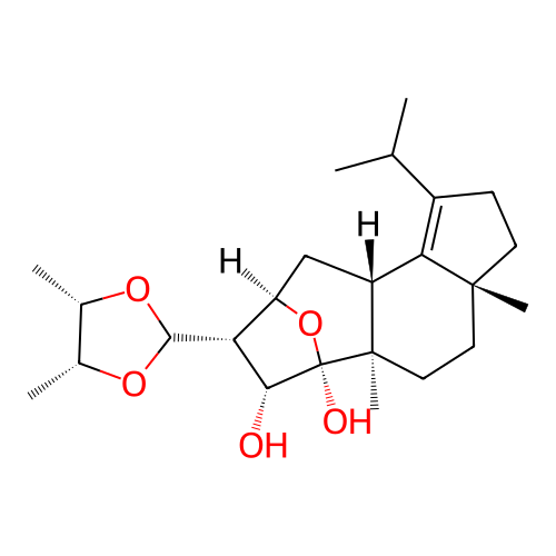 | InChI | InChI=1S/C24H38O5/c1-12(2)15-7-8-22(5)9-10-23(6)16(19(15)22)11-17-18(20(25)24(23,26)29-17)21-27-13(3)14(4)28-21/h12-14,16-18,20-21,25-26H,7-11H2,1-6H3/t13-,14+,16-,17-,18-,20-,21?,22-,23-,24-/m1/s1 |