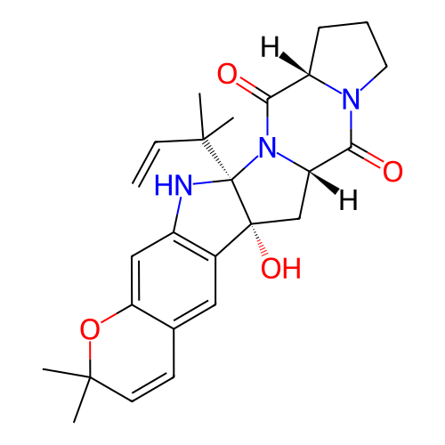 | InChI | InChI=1S/C26H31N3O4/c1-6-23(2,3)26-25(32,14-19-21(30)28-11-7-8-18(28)22(31)29(19)26)16-12-15-9-10-24(4,5)33-20(15)13-17(16)27-26/h6,9-10,12-13,18-19,27,32H,1,7-8,11,14H2,2-5H3/t18-,19-,25+,26-/m0/s1 |