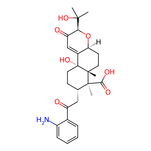 | InChI | InChI=1S/C27H35NO7/c1-24(2,33)22-20(30)14-17-21(35-22)10-11-25(3)26(4,23(31)32)15(9-12-27(17,25)34)13-19(29)16-7-5-6-8-18(16)28/h5-8,14-15,21-22,33-34H,9-13,28H2,1-4H3,(H,31,32)/t15-,21-,22-,25+,26+,27+/m0/s1 |