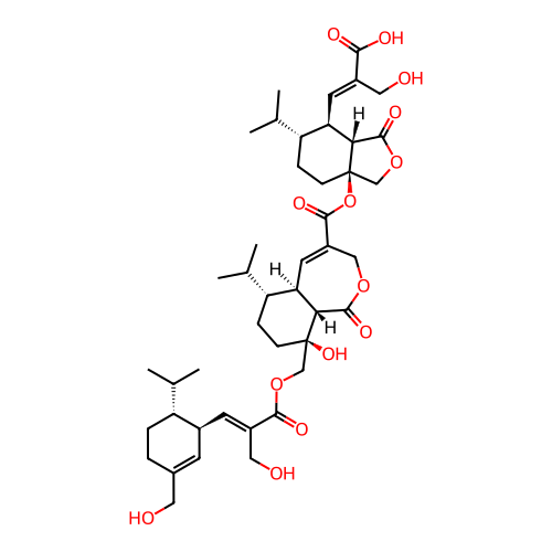 | SMILES | CC(C)[C@H]1CCC(=C[C@@H]1/C=C(\CO)/C(=O)OC[C@@]2(CC[C@@H]([C@@H]3[C@@H]2C(=O)OCC(=C3)C(=O)O[C@@]45CC[C@@H]([C@H]([C@@H]4C(=O)OC5)/C=C(\CO)/C(=O)O)C(C)C)C(C)C)O)CO |