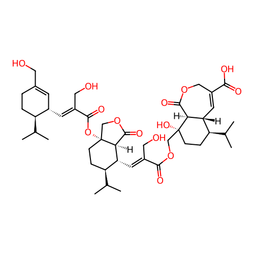 | SMILES | CC(C)[C@H]1CCC(=C[C@@H]1/C=C(\CO)/C(=O)O[C@@]23CC[C@@H]([C@H]([C@@H]2C(=O)OC3)/C=C(\CO)/C(=O)OC[C@@]4(CC[C@@H]([C@@H]5[C@@H]4C(=O)OCC(=C5)C(=O)O)C(C)C)O)C(C)C)CO |