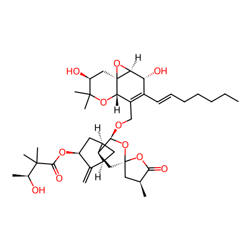 | SMILES | CCCCC/C=C/C1=C([C@H]2[C@]3(C[C@@H](C(O2)(C)C)O)[C@H]([C@@H]1O)O3)CO[C@@H]4[C@@]5(C[C@@]6(O4)C[C@@H](C(=O)O6)C)[C@@H]7C[C@H]5C(=C)[C@H](C7)OC(=O)C(C)(C)[C@H](C)O |