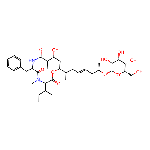 | SMILES | CCC(C)C1C(=O)OC(C(C)C/C=C/C[C@@H](C)O[C@@H]2O[C@H](CO)[C@@H](O)[C@H](O)[C@@H]2O)CC(O)C(C)C(=O)NC(CC2=CC=CC=C2)C(=O)N1C |