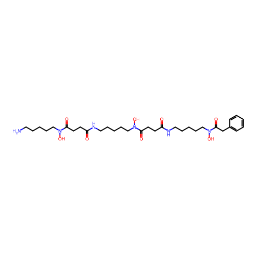 | SMILES | NCCCCCN(O)C(=O)CCC(=O)NCCCCCN(O)C(=O)CCC(=O)NCCCCCN(O)C(=O)CC1=CC=CC=C1 |