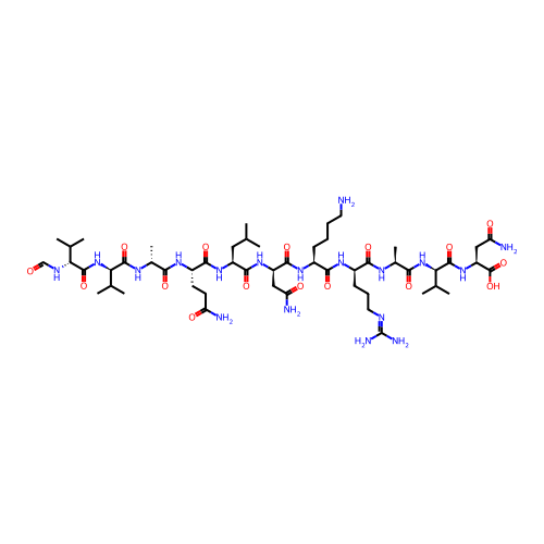 | SMILES | CC(C)C[C@H](NC(=O)[C@H](CCC(N)=O)NC(=O)[C@@H](C)NC(=O)[C@H](NC(=O)[C@H](NC=O)C(C)C)C(C)C)C(=O)N[C@H](CC(N)=O)C(=O)N[C@@H](CCCCN)C(=O)N[C@H](CCCN=C(N)N)C(=O)N[C@@H](C)C(=O)N[C@@H](C(=O)N[C@@H](CC(N)=O)C(=O)O)C(C)C |