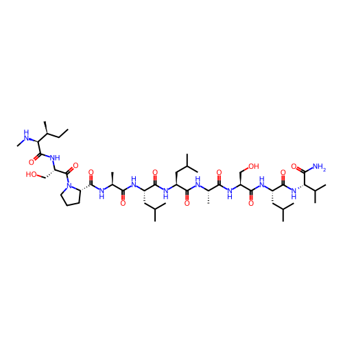 | SMILES | CC[C@H](C)[C@H](NC)C(=O)N[C@@H](CO)C(=O)N1CCC[C@H]1C(=O)N[C@@H](C)C(=O)N[C@@H](CC(C)C)C(=O)N[C@@H](CC(C)C)C(=O)N[C@@H](C)C(=O)N[C@@H](CO)C(=O)N[C@@H](CC(C)C)C(=O)N[C@H](C(N)=O)C(C)C |