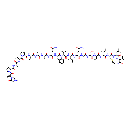 | SMILES | C/C=C(\NC(=O)[C@H](CO)NC(=O)CNC(=O)[C@@H](CCC(N)=O)NC(=O)[C@H](NC(=O)[C@@H](NC(=O)[C@H](CC1=CC=CC=C1)NC(=O)[C@@H](CCC(N)=O)NC(=O)[C@@H](C)NC(=O)[C@@H](C)NC(=O)/C(=C/C)NC(=O)[C@H]1CCCN1C(=O)/C(=C/C)NC(=O)[C@@H](C)NC(=O)[C@H]1CCCN1C(=O)/C(=C/C)N1CN(C)[C@@H](C)C1=O)C(C)C)[C@H](C)CC)C(=O)N[C@@H](C(=O)N[C@H]1CS/C=C\NC(=O)[C@H](C(C)C)NC(=O)[C@H](CC(C)C)NC1=O)[C@H](C)CC |