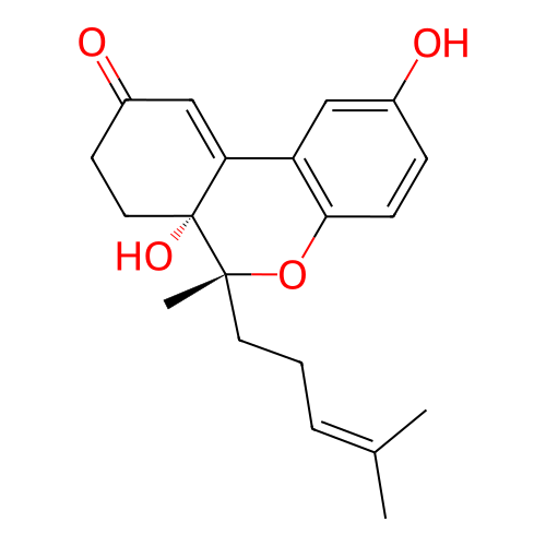 | InChI | InChI=1S/C20H24O4/c1-13(2)5-4-9-19(3)20(23)10-8-15(22)12-17(20)16-11-14(21)6-7-18(16)24-19/h5-7,11-12,21,23H,4,8-10H2,1-3H3/t19-,20-/m1/s1 |