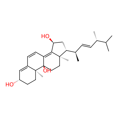| InChI | InChI=1S/C28H42O3/c1-17(2)18(3)7-8-19(4)23-16-24(30)25-22-10-9-20-15-21(29)11-12-27(20,6)28(22,31)14-13-26(23,25)5/h7-10,15,17-19,21,23-24,29-31H,11-14,16H2,1-6H3/b8-7+/t18-,19+,21-,23+,24-,26+,27-,28+/m0/s1 |