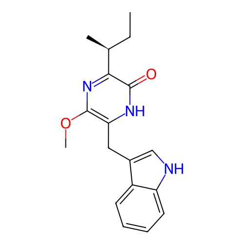 | SMILES | CC[C@H](C)C1=NC(OC)=C(CC2=C[NH]C3=CC=CC=C23)[NH]C1=O |