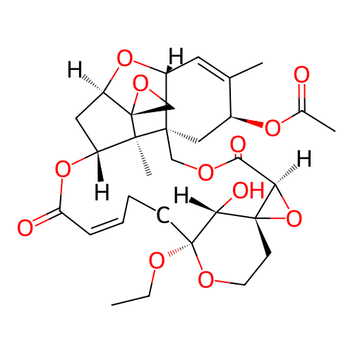 | SMILES | CCO[C@@]12CC/C=C\C(=O)O[C@@H]3C[C@H]4O[C@@H]5C=C(C)[C@@H](OC(C)=O)C[C@]5(COC(=O)[C@H]5O[C@]5(CCO1)[C@H]2O)[C@]3(C)[C@]41CO1 |