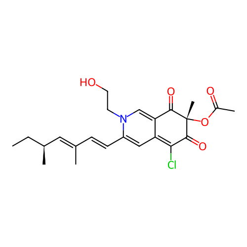 | SMILES | CC[C@H](C)/C=C(C)/C=C/C1=CC2=C(Cl)C(=O)[C@@](C)(OC(C)=O)C(=O)C2=CN1CCO |