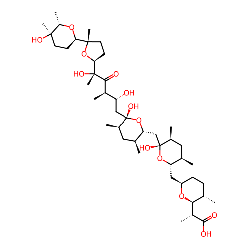 | InChI | InChI=1S/C44H76O13/c1-23-12-13-31(54-37(23)29(7)39(47)48)20-33-24(2)18-27(5)44(52,55-33)22-34-25(3)19-26(4)43(51,56-34)21-32(45)28(6)38(46)42(11,50)36-15-17-41(10,57-36)35-14-16-40(9,49)30(8)53-35/h23-37,45,49-52H,12-22H2,1-11H3,(H,47,48)/t23-,24+,25-,26+,27-,28+,29+,30-,31+,32+,33-,34+,35+,36-,37-,40+,41-,42+,43-,44+/m0/s1 |