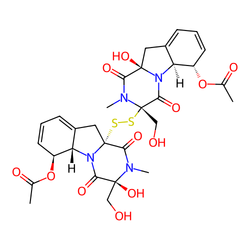 | SMILES | CC(=O)O[C@H]1C=CC=C2C[C@@]3(O)C(=O)N(C)[C@@](CO)(SS[C@@]45CC6=CC=C[C@H](OC(C)=O)[C@H]6N4C(=O)[C@@](O)(CO)N(C)C5=O)C(=O)N3[C@@H]21 |