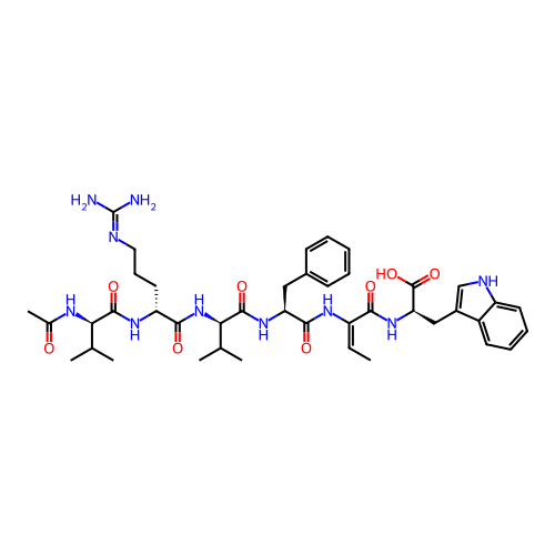 | InChI | InChI=1S/C42H58N10O8/c1-7-29(36(54)51-33(41(59)60)21-27-22-46-30-17-12-11-16-28(27)30)48-38(56)32(20-26-14-9-8-10-15-26)50-40(58)35(24(4)5)52-37(55)31(18-13-19-45-42(43)44)49-39(57)34(23(2)3)47-25(6)53/h7-12,14-17,22-24,31-35,46H,13,18-21H2,1-6H3,(H,47,53)(H,48,56)(H,49,57)(H,50,58)(H,51,54)(H,52,55)(H,59,60)(H4,43,44,45)/b29-7+/t31-,32+,33-,34-,35-/m1/s1 |