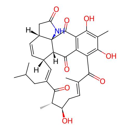 | SMILES | C/C1=C\C[C@@H](O)[C@H](C)C(=O)/C(CC(C)C)=C/[C@@H]2C=C[C@@H]3CC(=O)N[C@]34C(=O)C3=C(O)C(C)=C(O)C(=C3C(=O)[C@H]24)C1=O |
