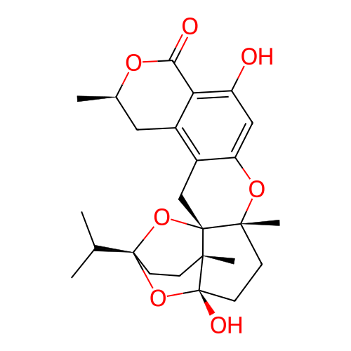 | InChI | InChI=1S/C25H32O7/c1-13(2)23-8-6-21(4)24(31-23)12-16-15-10-14(3)29-20(27)19(15)17(26)11-18(16)30-22(24,5)7-9-25(21,28)32-23/h11,13-14,26,28H,6-10,12H2,1-5H3/t14-,21-,22-,23-,24+,25+/m1/s1 |