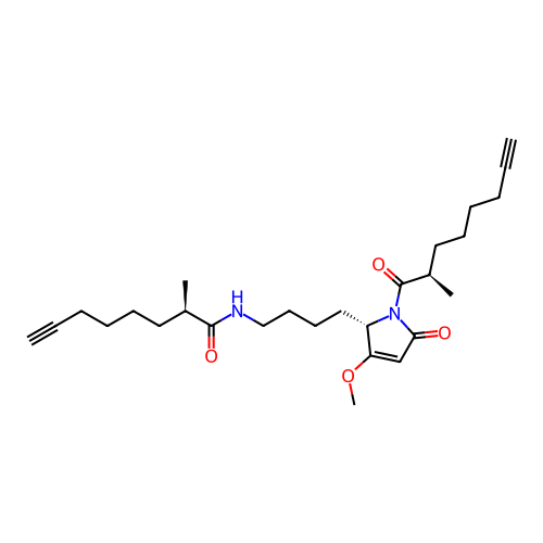 | SMILES | C#CCCCC[C@@H](C)C(=O)NCCCC[C@H]1C(OC)=CC(=O)N1C(=O)[C@H](C)CCCCC#C |